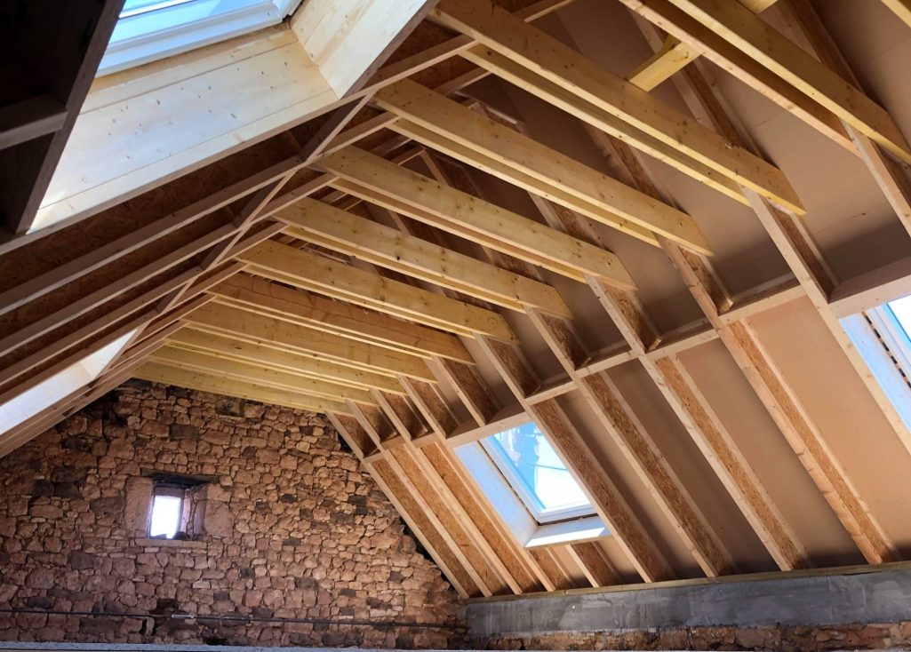 - la structure de toiture (chevrons en poutres en I)